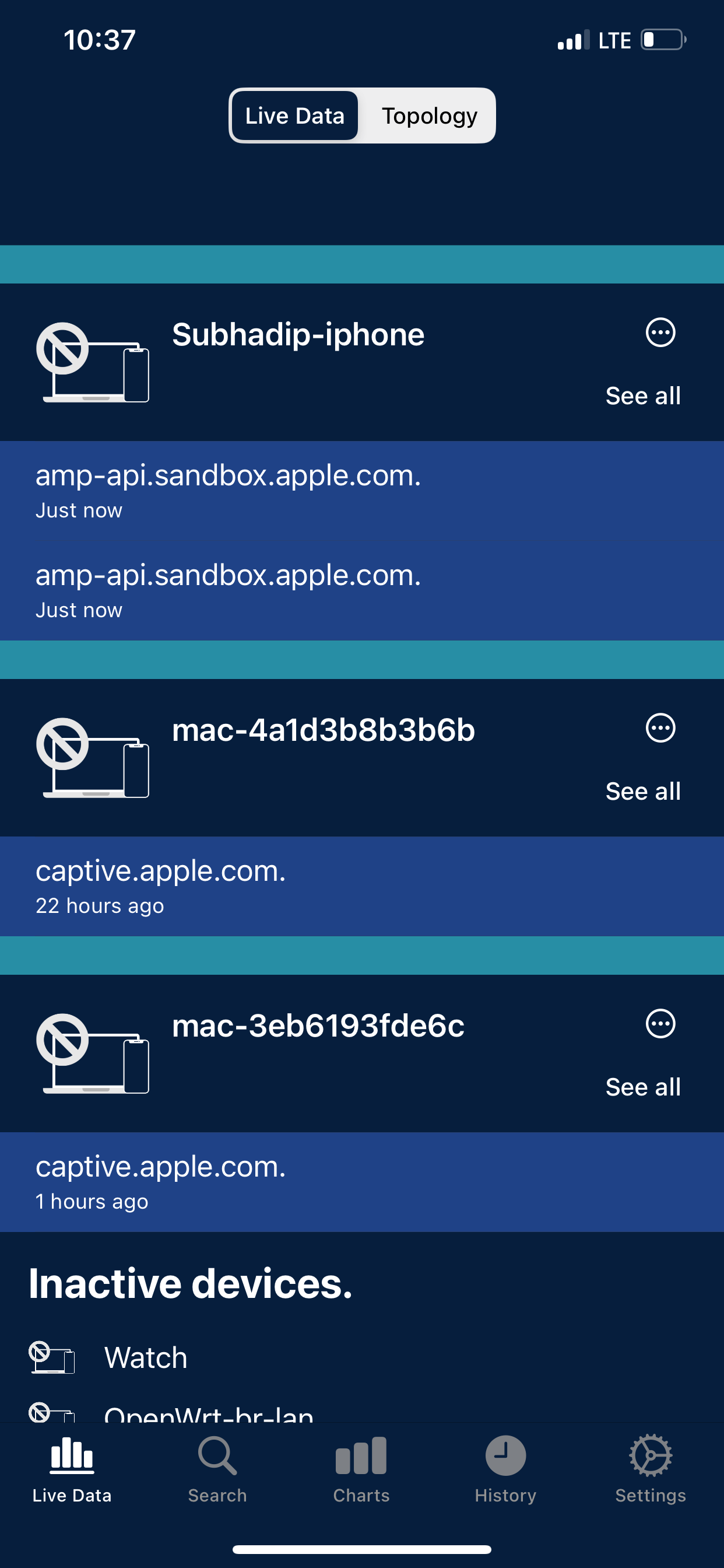 Optionally, If you want to view more DNS traffic per device on your mobile apps, click “See all” to view more DNS traffic data.